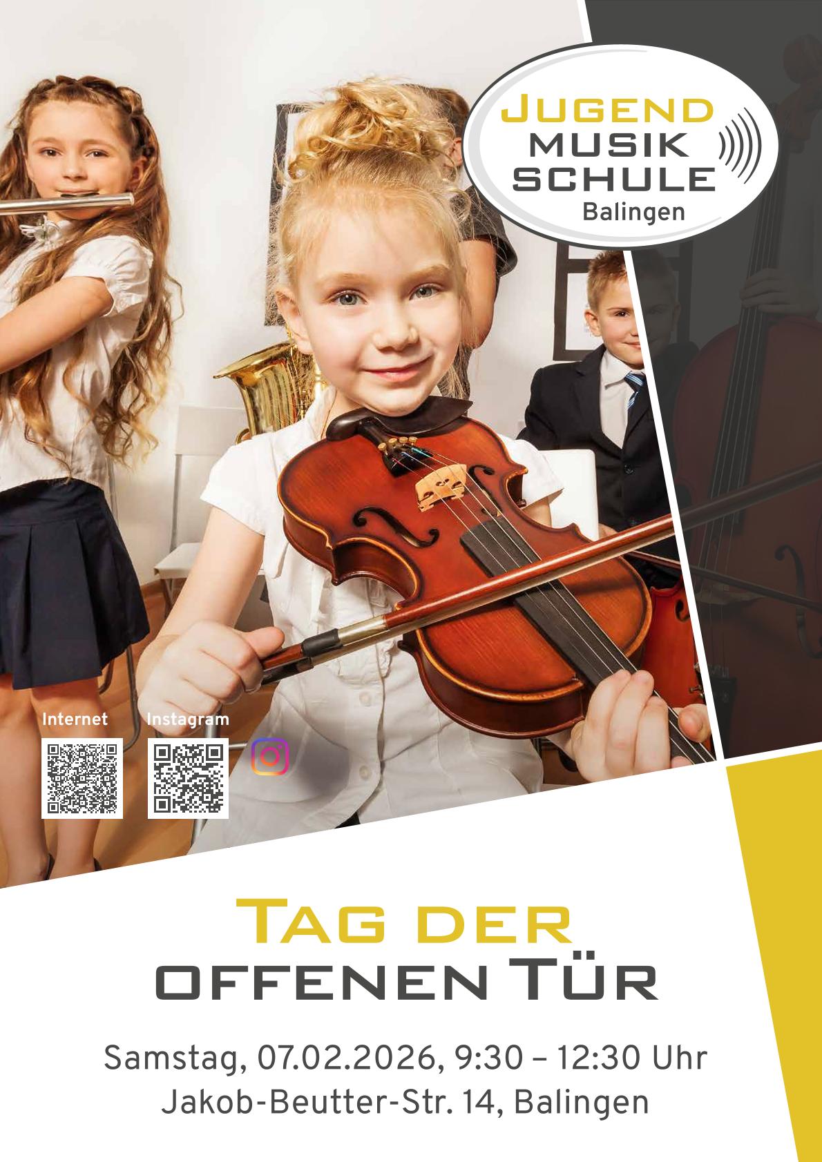 Wäre es nicht toll, wenn Ihr Kind ein Musikinstrument spielen könnte?Das aktive Musizieren mit einem Instrument oder der Stimme macht nicht nur Spaß, sondern unterstützt auch maßgeblich die Entwicklung Ihres Kindes. Kinder, die bereits frühzeitig häufig mit Musik in Kontakt kommen und selbst musizieren, weisen oft eine verbesserte Konzentration, Aufmerksamkeitsspanne, Gedächtnisleistung und Problemlösungsfähigkeit auf. Beim gemeinsamen Musizieren im Ensemble oder Orchester werden Wahrnehmung und soziale Kompetenzen geschult und Freundschaften geknüpft. Zudem hat Musik einen positiven Einfluss auf zahlreiche Vorgänge im Körper: Sie verändert den Herzschlag, beeinflusst Atemfrequenz und Blutdruck und wirkt sich auch auf viele andere Bereiche im menschlichen Körper aus. So kann Musik beflügeln, glücklich stimmen, beruhigen, entspannen, aktivieren... Musik für alle.Egal welchen Alters, welcher sozialer oder kultureller Herkunft oder mit welchem Anspruch ans eigene Musizieren- unsere professionell ausgebildeten Lehrkräfte verstehen es, jeden an der richtigen Stelle abzuholen und bedarfsgerecht zu fördern. Bereits ab 9 Monaten heißen wir Ihr Kind bei uns willkommen. Auch für Erwachsene und Spätberufene ist ein Einstieg in die Musik bei uns möglich. Kooperationspartner für Schulen und Vereine.Wir wollen für Balingen und seine Gemeinden die erste Adresse für musikalische Bildung sein. Deshalb liegt uns die Zusammenarbeit mit Schulen und Vereinen besonders am Herzen. In zahlreichen Kooperationen bereichern wir das Bildungsangebot öffentlicher Schulen und unterstützen Musikvereine bei der Ausbildung ihres Nachwuchses. Wir machen Kultur.Unsere Orchester und Ensembles sind Teil des Balinger Kulturkalenders. In eigenen Konzerten und bei zahlreichen öffentlichen Veranstaltungen sind unsere Orchester und Ensembles live zu erleben und bereichern somit das kulturelle Leben in Balingen und Umgebung.