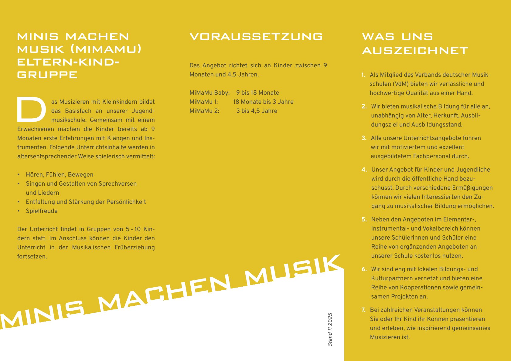 - Kooperationsangebote mit Kindergärten, Schulen und Musikvereinen