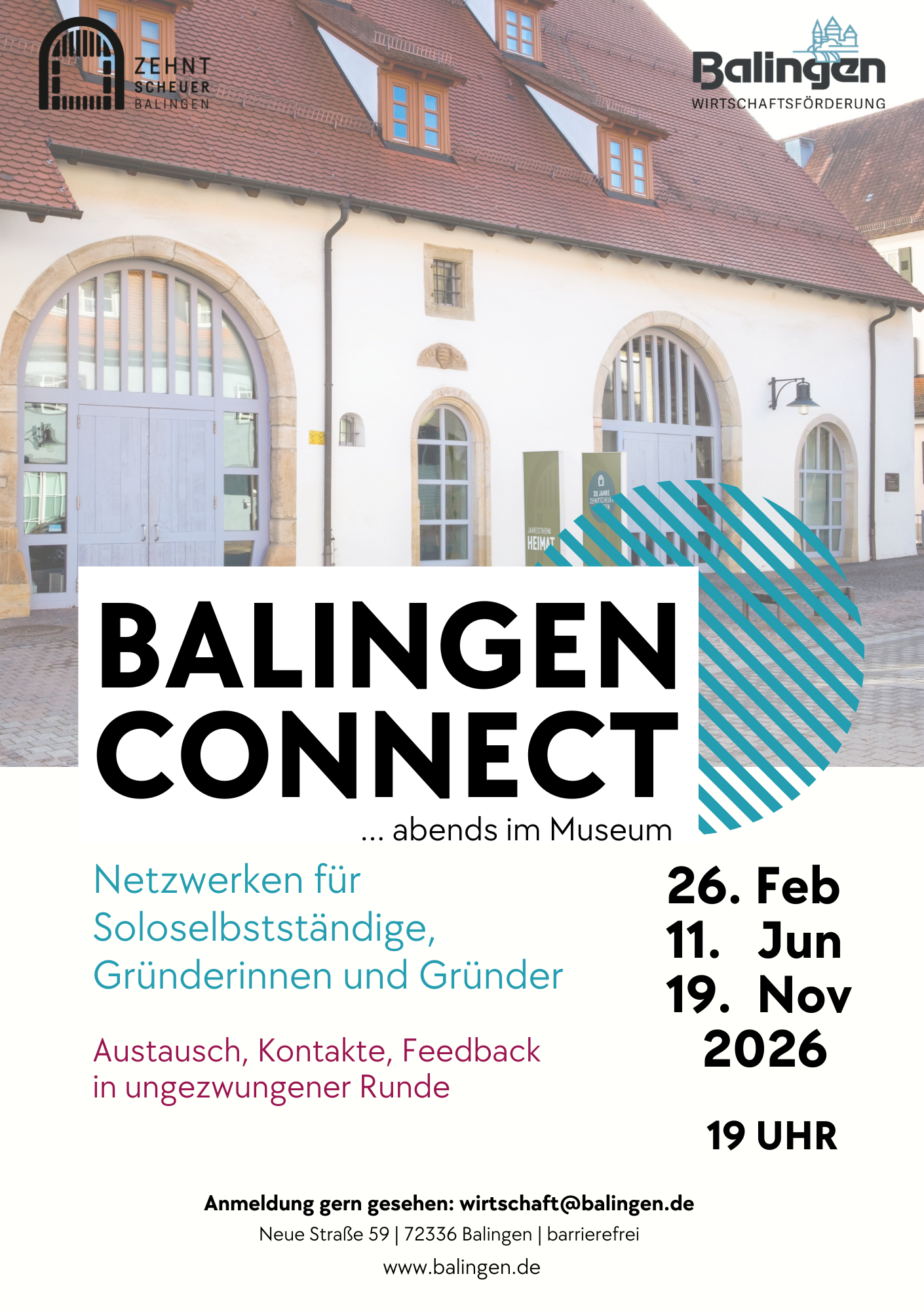 Der Balinger Frauenwirtschaftstag 2026 findet am 22.10.2026 um 19 Uhr in der Zehntscheuer statt.