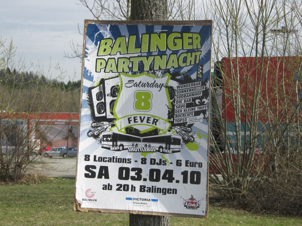 Die Werbung mit Stand- und Hängeplakaten für Veranstaltungen bedarf der Erlaubnis nach § 17 der Polizeilichen Umweltschutzverordnung der Stadt Balingen.