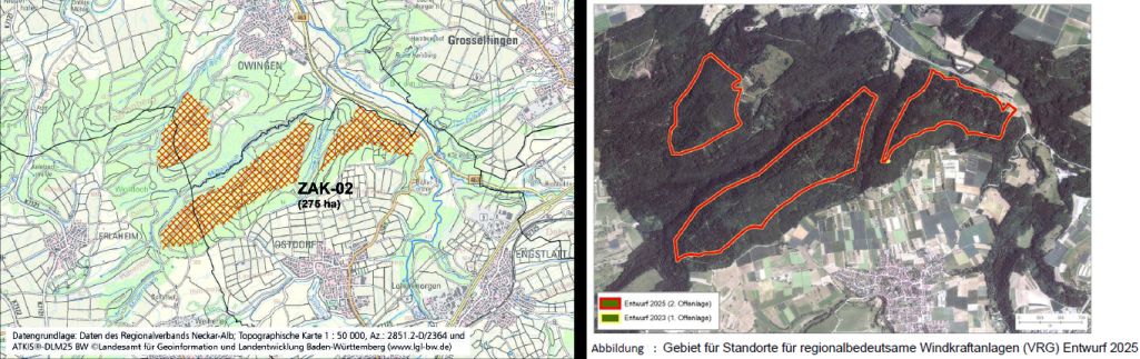 Für Balingen ist die Ausweisung eines 275 ha großen Vorranggebiets „ZAK-02“ nördlich von Ostdorf enthalten. Das Gebiet besteht aus 3 Teilflächen, die teilweise auch auf den Gemarkungen Owingen und Erlaheim liegen.