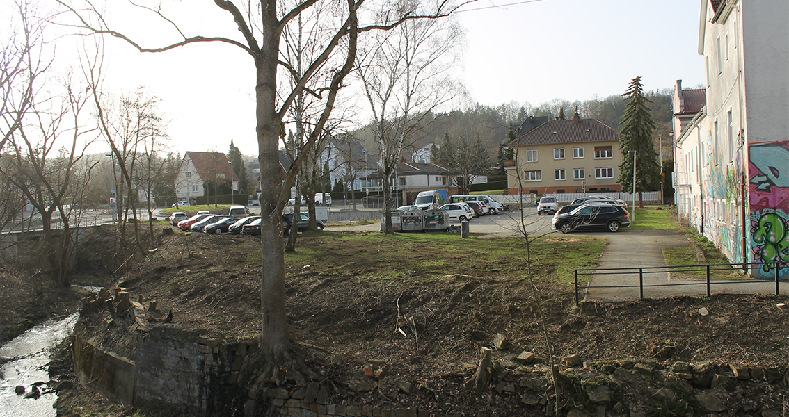Die Verlegung des Jugendhauses in den Aktivpark schafft Platz an der Steinach: das Jugendhaus INSEL wird rückgebaut. So entstehen nicht nur Möglichkeiten für die Freiraumplanung: Das Gebäude des ehemaligen Lichtspielhauses und späteren Tanzcasinos wird baulich freigestellt, um als Solitär die umgebenden Freianlagen zu prägen.