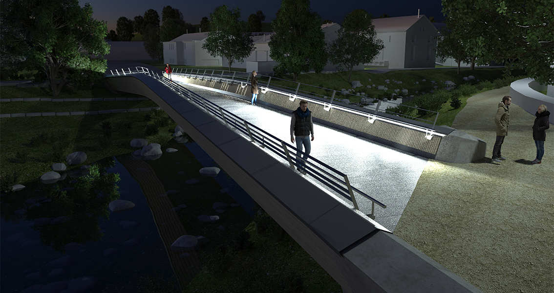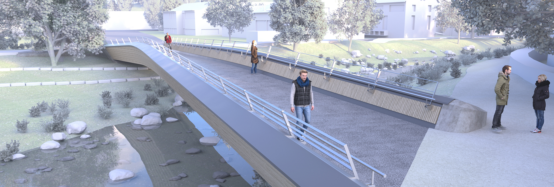 Die Gestaltung des Landschaftsraums und der notwendige Hochwasserschutz gehen beim neuen Parkufersteg eine gelungene Verbindung ein. Denn durch die Aufweitung der Eyach reichte die Spannweite der vorhandenen Brücke nicht mehr aus. Die Stadt beauftragte daraufhin drei renommierte Ingenieurbüros bzw. Bietergemeinschaften damit, für diese Stelle ein innovatives Holzbauwerk zu entwickeln. Die gestalterisch und technisch hochwertigen Entwürfe wurden einer Jury vorgelegt, bestehend aus der Verwaltungsspitze, Mitgliedern des Gemeinderats sowie Fachleuten aus Architektur, Landschaftsarchitektur und Bauingenieurswesen.