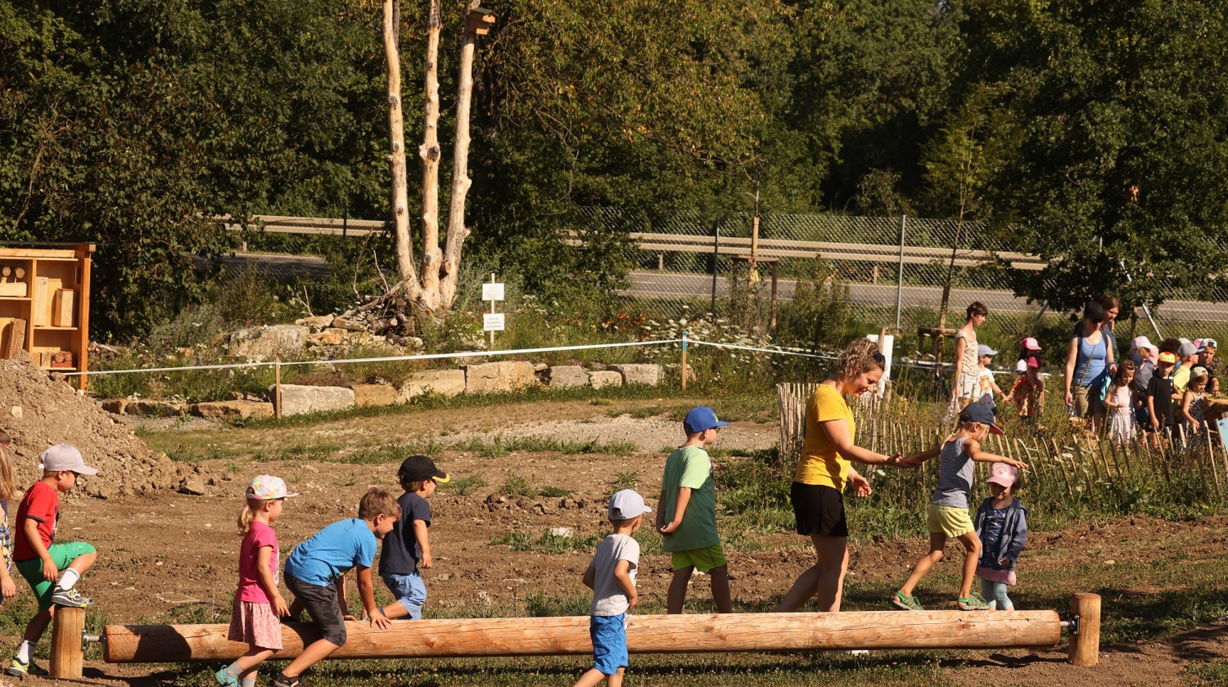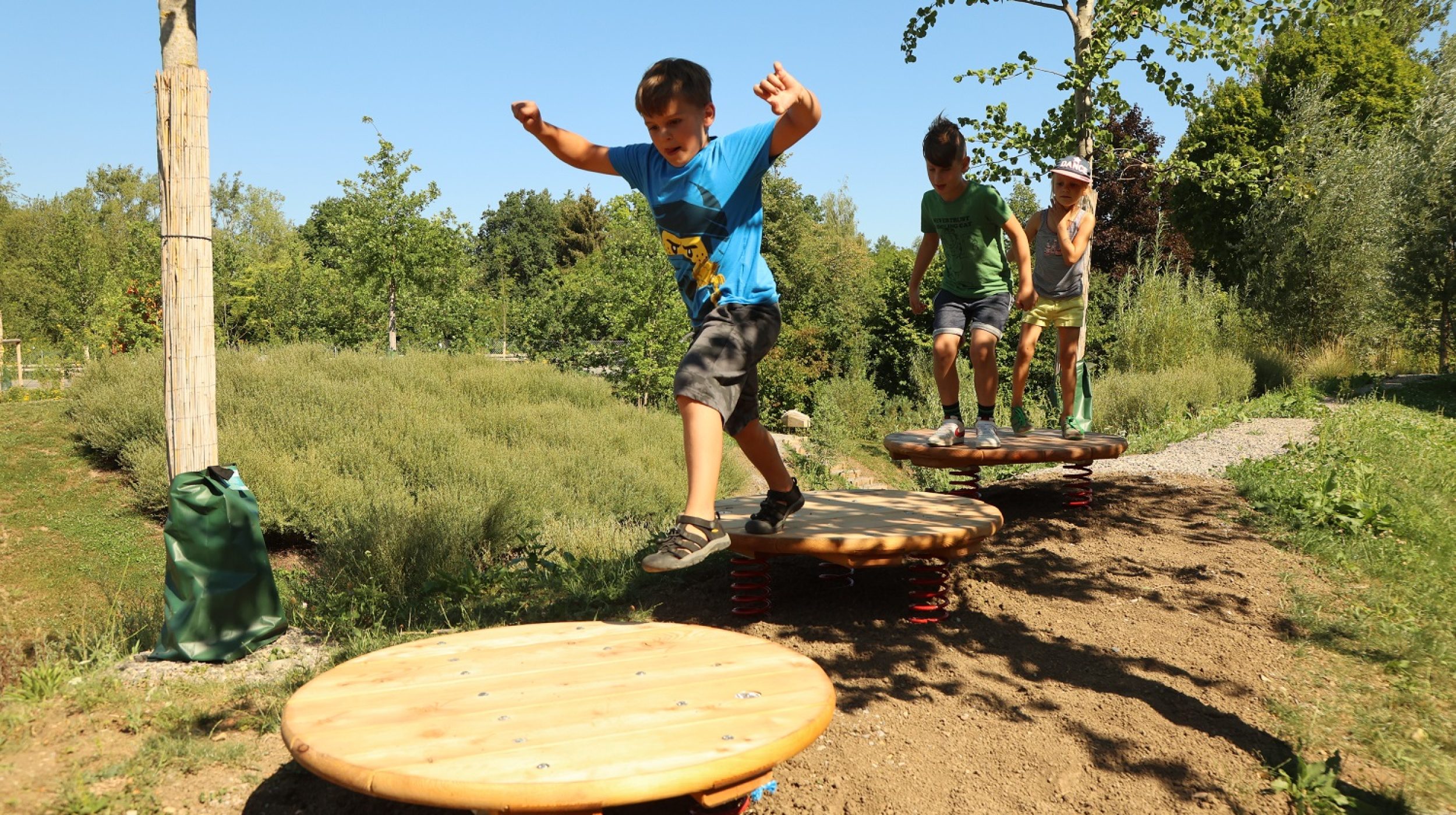 Naturerlebnis inmitten einer naturnahen Hügellandschaft: Die Erlebnisauen bilden den grünen Auftakt im Norden der Gartenschau Balingen 2023.