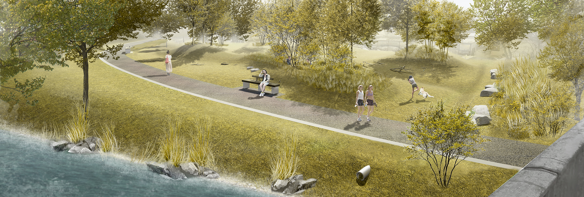 Die neu geplanten Hügel im Bereich der Erlebnisauen Balingen sind die Flächen, die sowohl räumlich als auch gestalterisch am weitesten von der Innenstadt entfernt und am nächsten an der freien Landschaft liegen. Die topografisch entsprechend gestaltete Hügellandschaft wird der nördlichste Ausläufer des Aktivparks sein und damit gleichzeitig ein grüner, wassernaher Auftakt zur Gartenschau Balingen 2023.