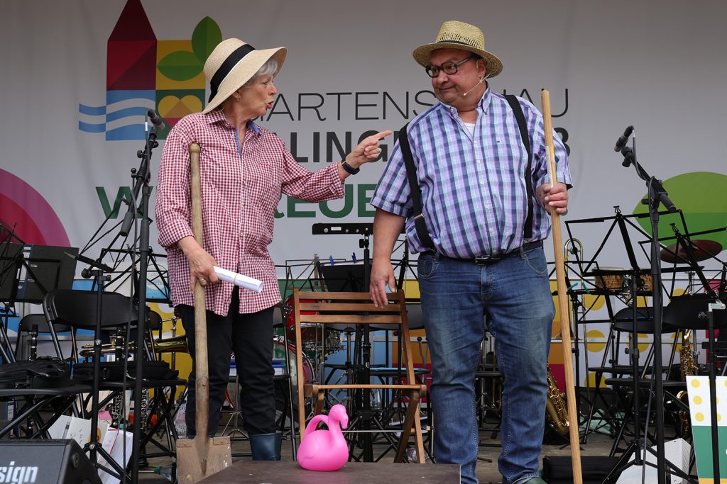 Durch das Bühnenprogramm, das neben der musikalischen Untermalung des Tages auch Theater- und andere Vorstellungsbeiträge bot, wurde ein Ausblick auf die Veranstaltungen gegeben. Das Theater Lindenhof ließ in einem kurzen, komischen Stück die Stimmen der Balinger zur Gartenschau laut werden. Mit ihrem kabarettistischen Beitrag überzeugten die Kächeles von der Unternehmung und die Kindertanzgruppe Regenbogen bunt zeigte mit dem kurzen Tanzworkshop für alle anwesendenden Kinder, dass tanzen gar nicht so schwer ist und auch spontan viel Spaß machen kann. Auch Kinderprogramm mit dem Spielmobil des Jugendhauses Balingen war geboten.