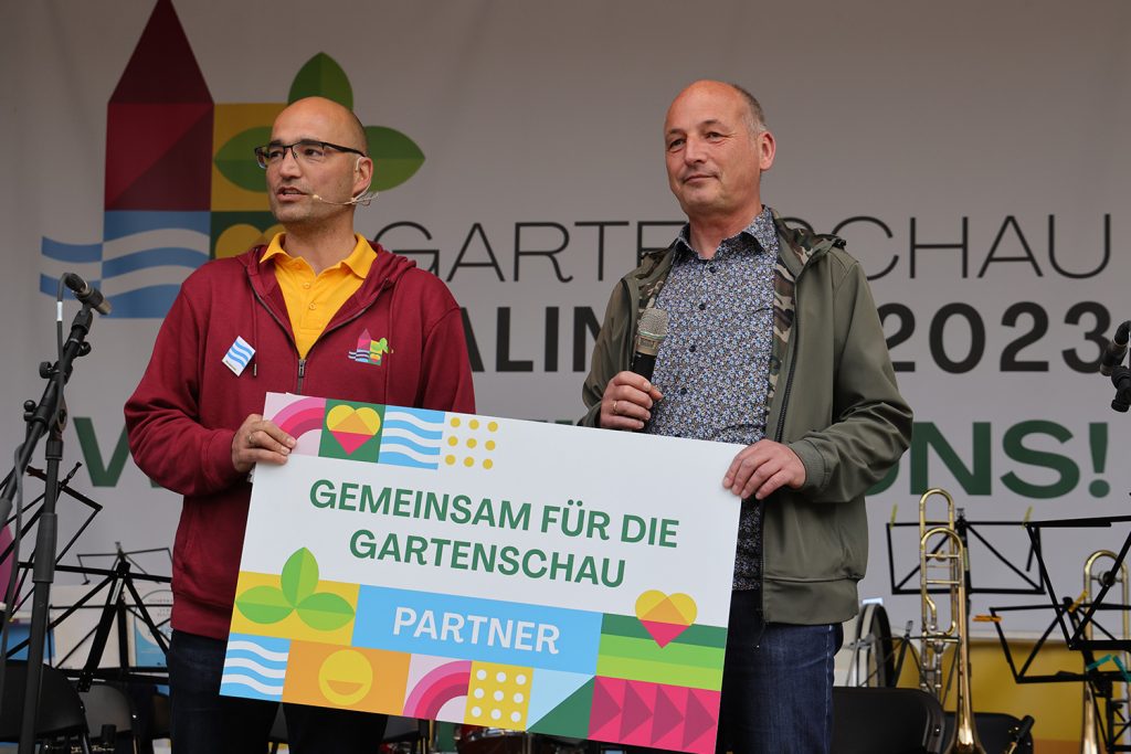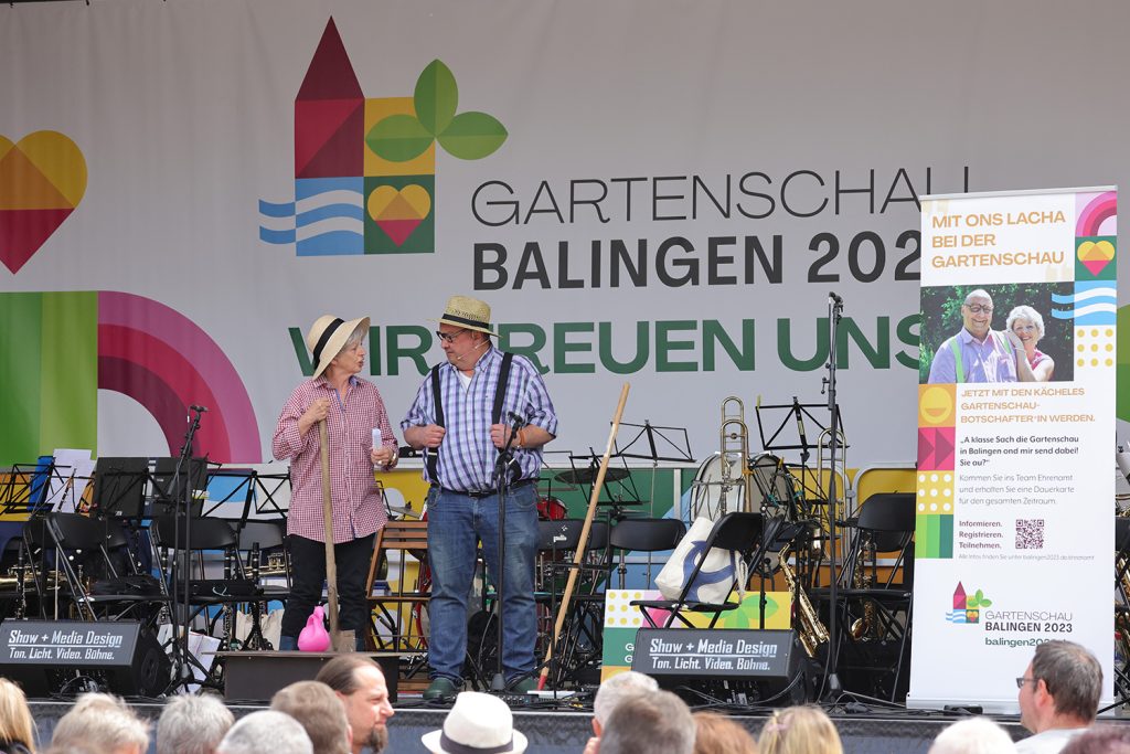 Des weiteren wurde die HGV Gartenschau-Gewinnkärtle Aktion gestartet und mit Bernd Flohr, Vorsitzender des HGV Balingen, zusammen auf der Bühne erklärt und vorgestellt. Auch die Gartenschau-gebrandeten Autos vom Autohaus Harich als Gartenschau-Partner konnten an diesem Sonntag erstmals bewundert werden.