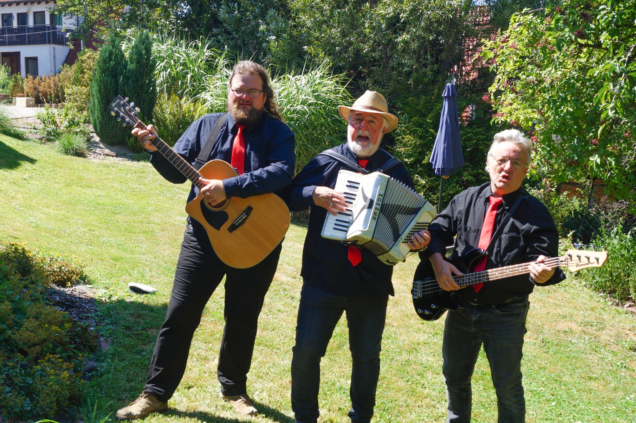 Die Hittingers, Fritz an den Tasten, Helmut am Bass und Ben an der Gitarre haben sich tatkräftige Unterstützung von Sängerin und Percussionistin Astrid aus dem Schwarzwald geholt.