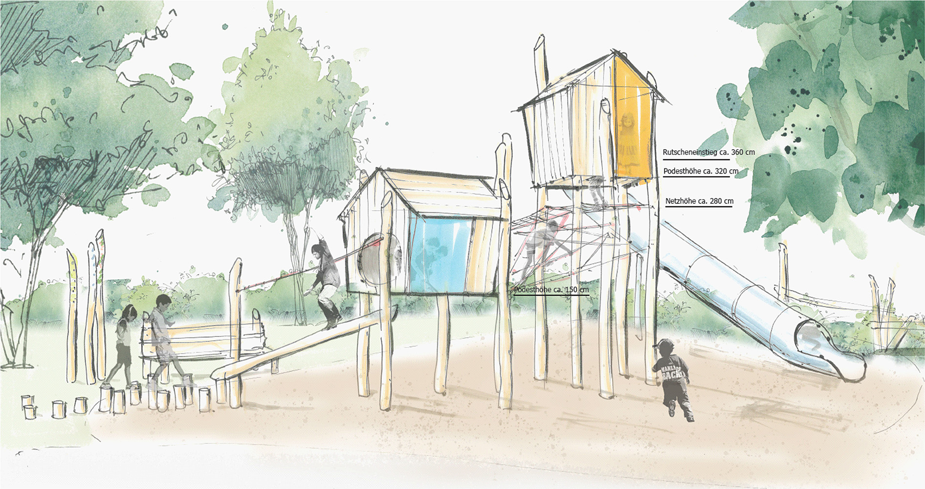 Zukünftig verfügt der Spielplatz über drei Ebenen mit unterschiedlichen Spielstationen.