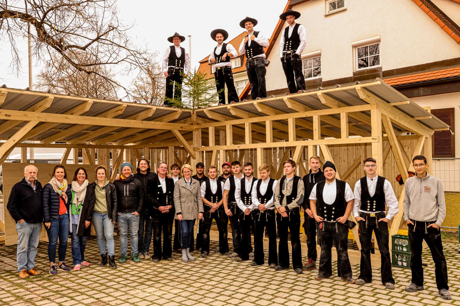 Richtfest am Fachwerkbau: Junge Zimmerleute stellen Pavillon für Albvereine