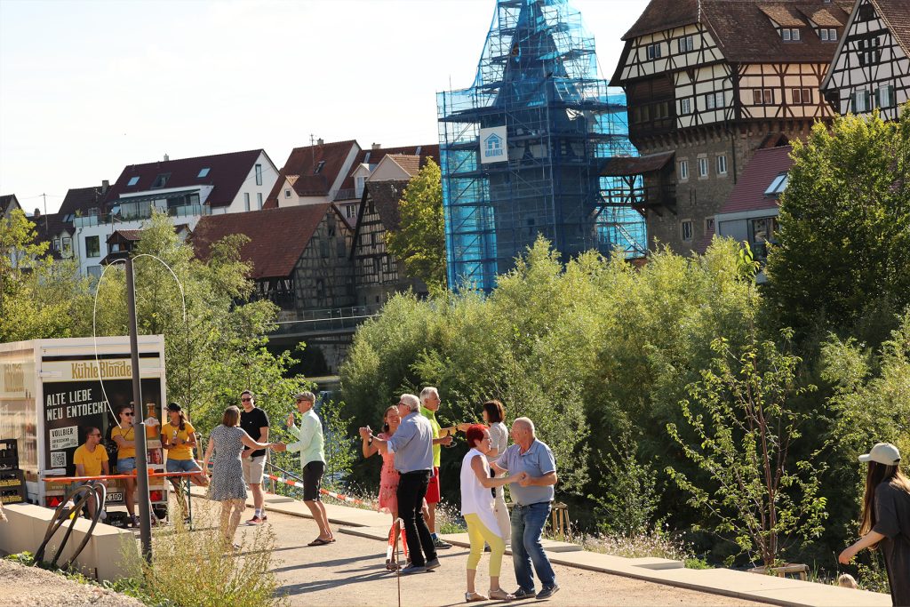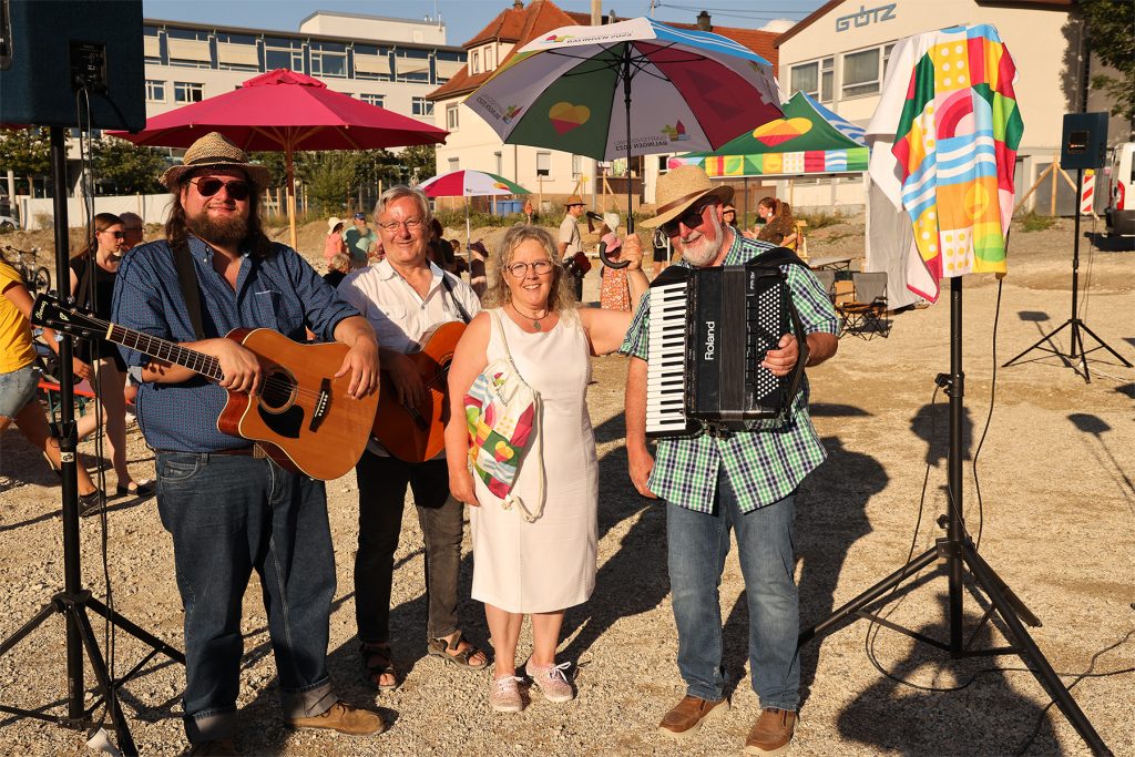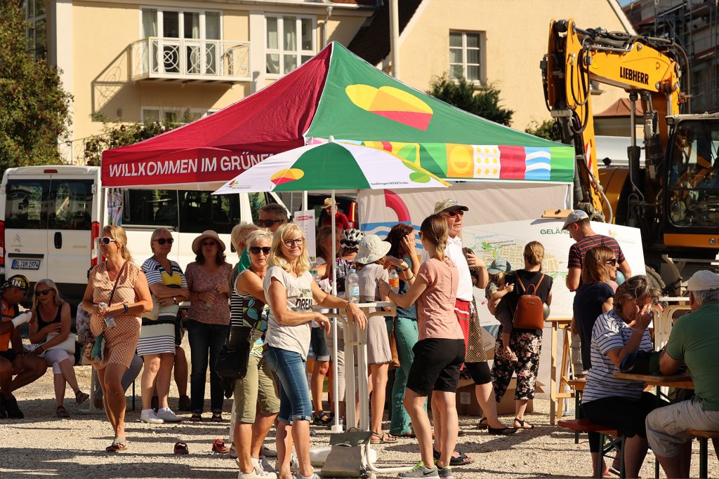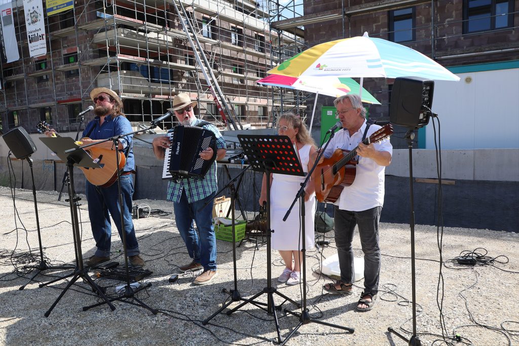 Mit zeitweise 250 Personen auf der Plaza-Baustelle ließ sich schon gut die erfrischende Gartenschau-Luft schnuppern. Der Hittexpress sorgte beim Baustellenkonzert bei bestem Wetter für gute Laune. Neben der Musik konnten auch schon die blühenden Eyachterrassen entdeckt & genossen werden.