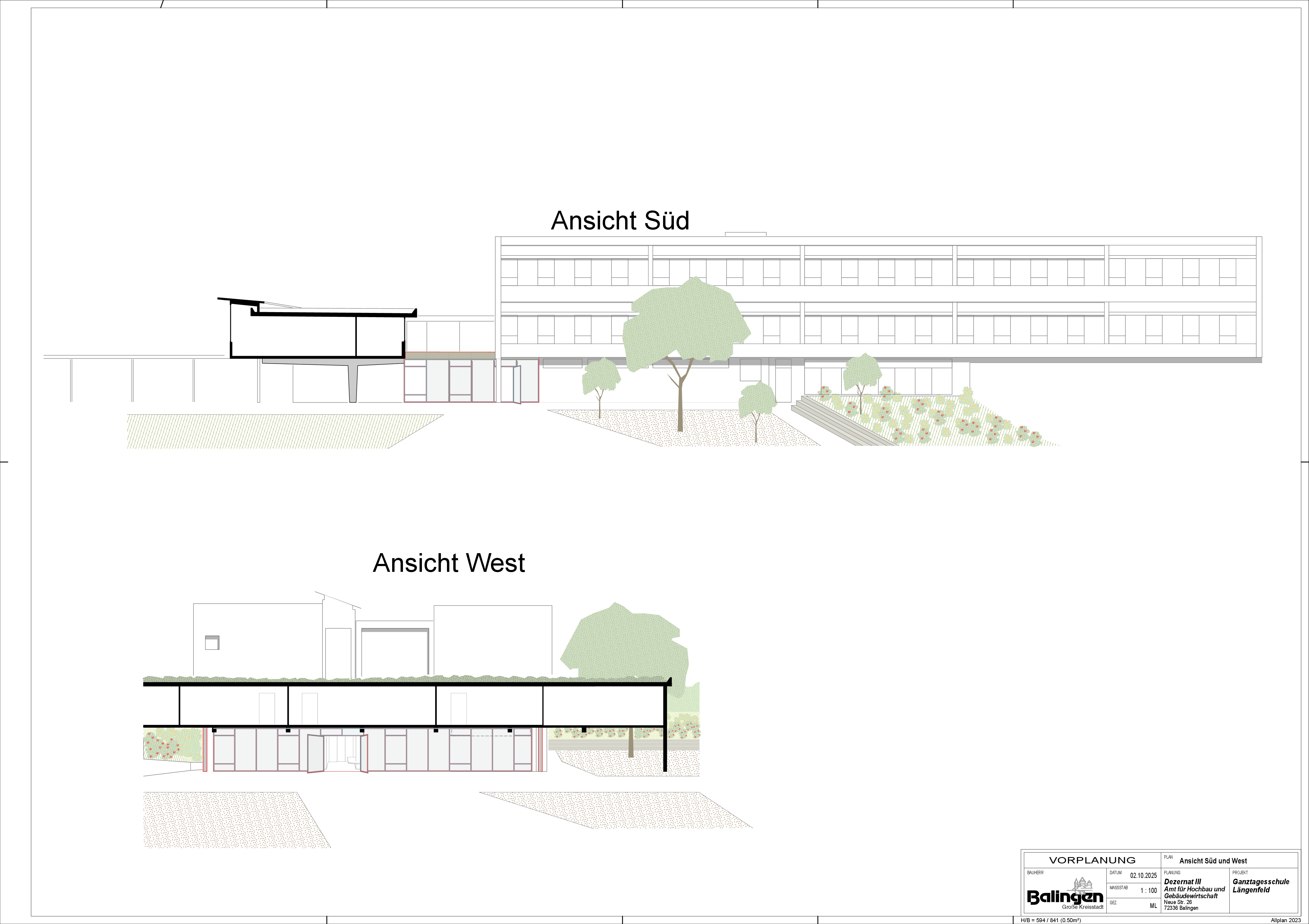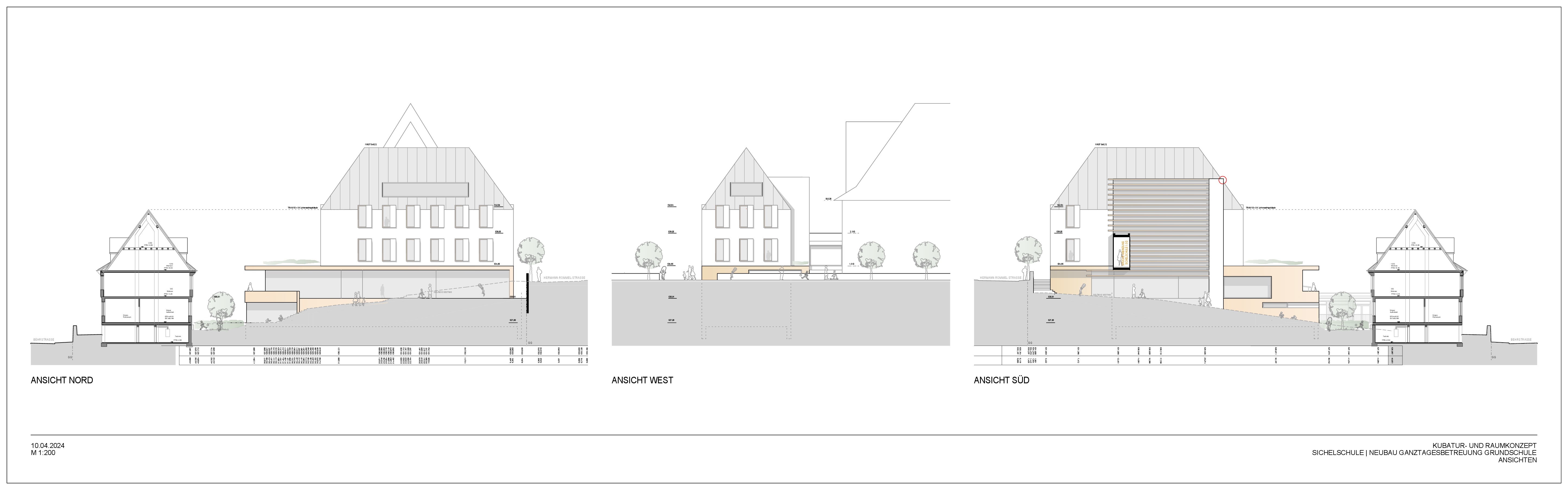 Auf dem Areal der denkmalgeschützten Sichelschule wird ein freistehender Neubau nördlich, zwischen Schulhauptgebäude und dem