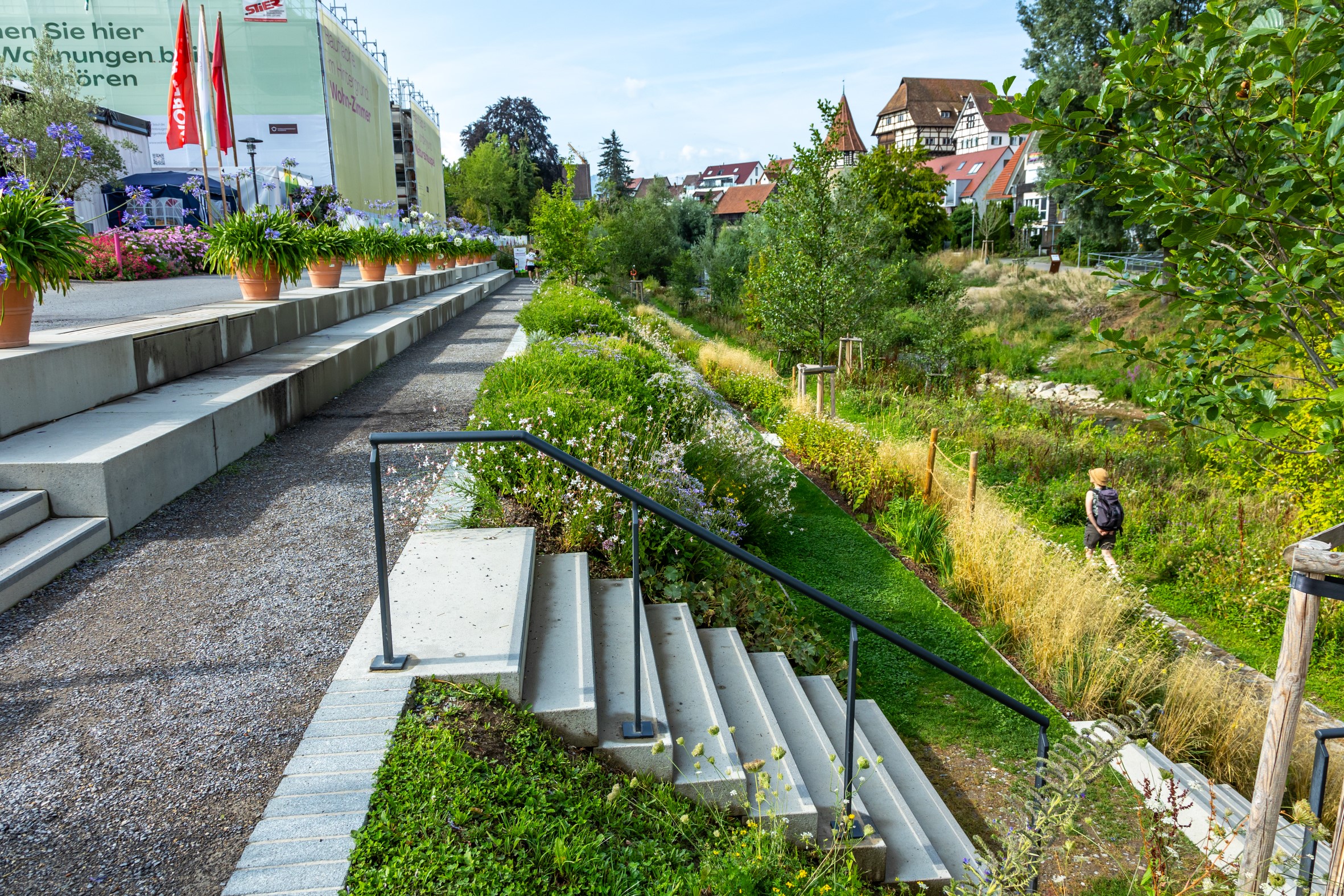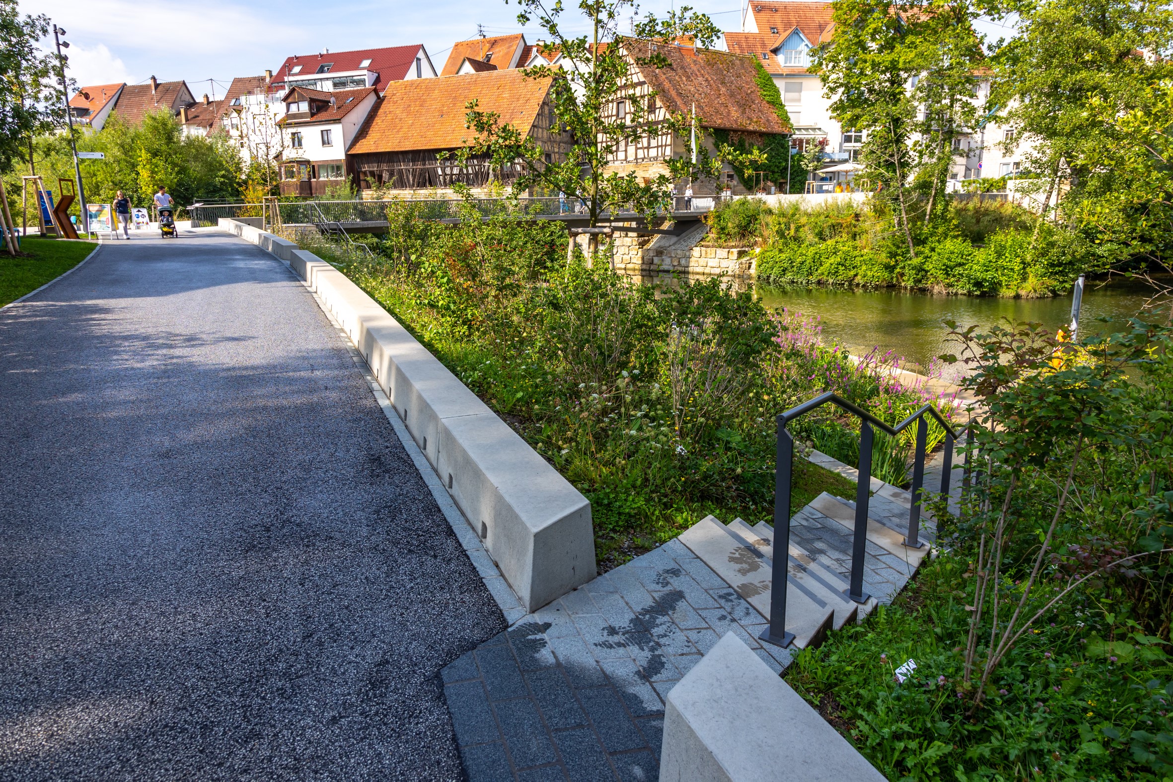 Die vom Büro lohrer.hochrein landschaftsarchitekten und stadtplaner aus München geplanten Bereiche werden durch die in Balingen lang ersehnte, neue Promenade für Fußgänger und Radfahrer entlang des östlichen Eyachufers verbunden.