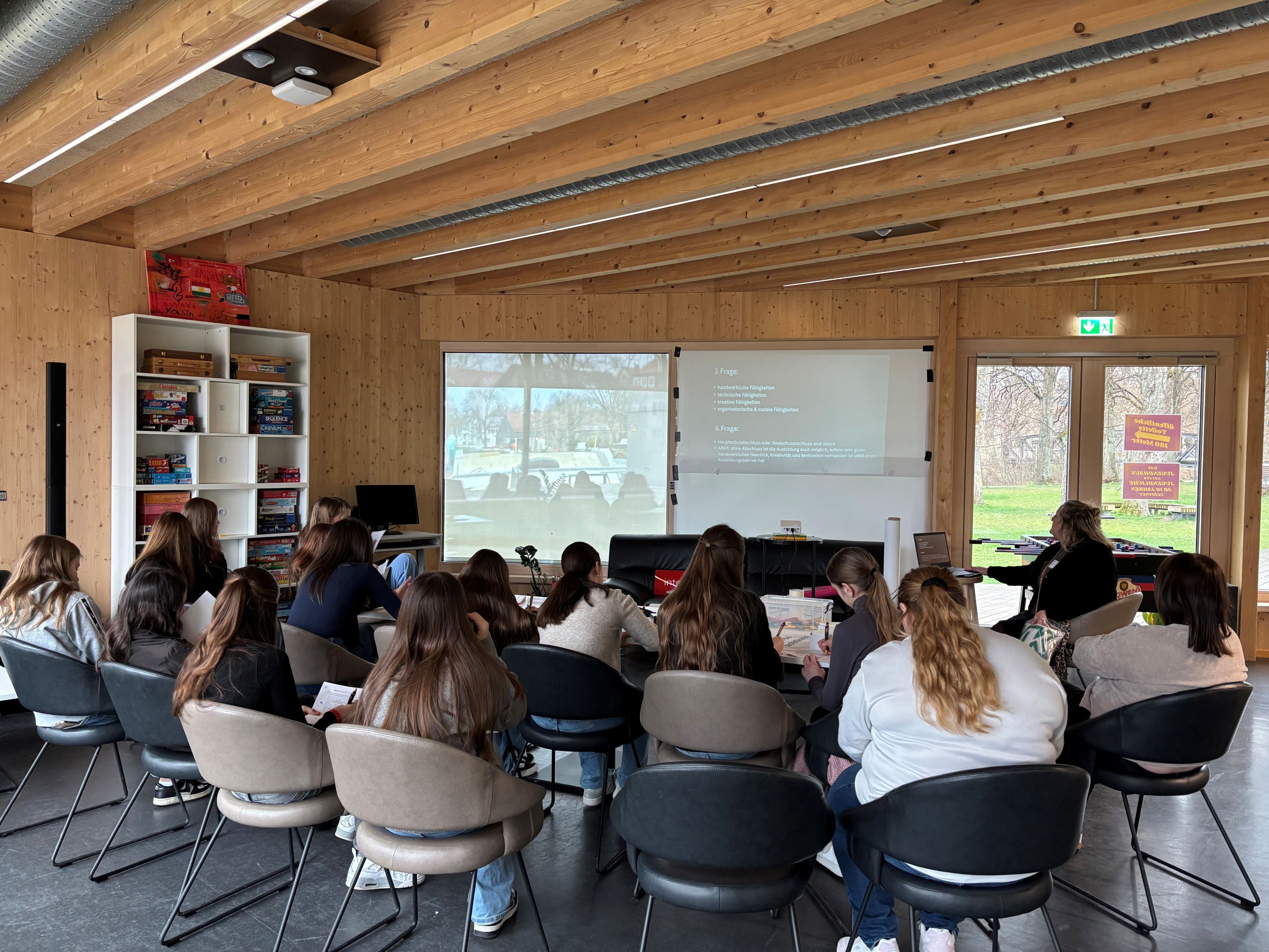 Die Mädchen sollen bereits vor dem ersten Schulpraktikum einen Einblick in unterschiedliche Berufsfelder kennenlernen. Das Ziel ist es, sie frühzeitig für die Themen Ausbildung und persönliche Lebensplanung zu sensibilisieren. In verschiedenen Workshops stellten die Berufsvertreterinnen den ganzen Morgen ihren Beruf vor, wobei sich die Mädchen auch an kleinen praktischen Aufgaben ausprobieren konnten. Außerdem standen sie für Fragen der Schülerinnen zur Verfügung und gaben mit ihren Informationen aus ihrem Arbeitsalltag einen guten Einblick in die unterschiedlichen Berufe. Die Schülerinnen erfuhren so aus erster Hand, wie der Berufsalltag aussieht, wie es um die Vereinbarkeit von Familie, Beruf und Freizeit bestellt ist und über welche Wege die Frauen zu ihren Berufen kamen.