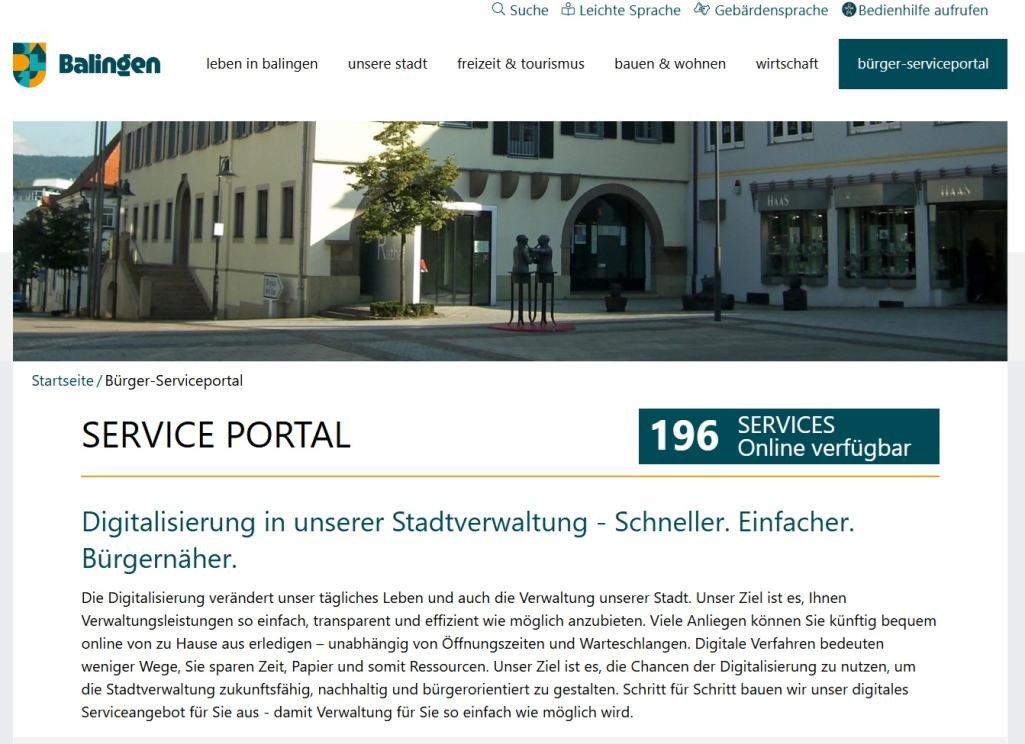 Die Stadt Balingen baut ihr digitales Angebot kontinuierlich weiter aus. Aktuell wurde auf der Homepage ein neues Bürger-Serviceportal eingerichtet, das einen Zugriff auf die bisher 196 teil- oder volldigitalisierten Servicedienstleistungen ermöglicht – gebündelt, übersichtlich und unabhängig von Öffnungszeiten.
