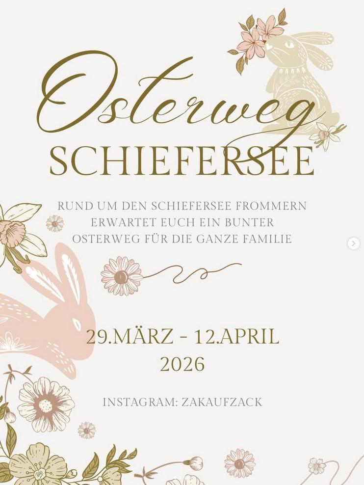 Rund um den Schiefersee Frommern erwarteet Euch ein bunter Osterweg für die ganze FamilieVeranstaltungsort
